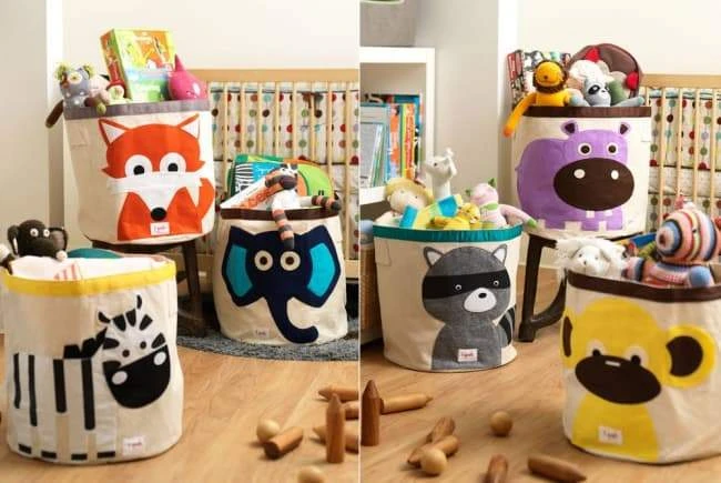 Help your kids clean up their act with our cute animal storage bins. Well sized for storing toys, books or laundry our storage bin measures 17.5″ in height and 17″ in diameter. Made of a cotton canvas our bin is tough enough to hold whatever you throw in it but cute enough to complement the best dressed home. A great space saver our bin folds easily away when not in use. The 3 Sprouts storage bin is a perfect gift for babies, toddlers and kids.