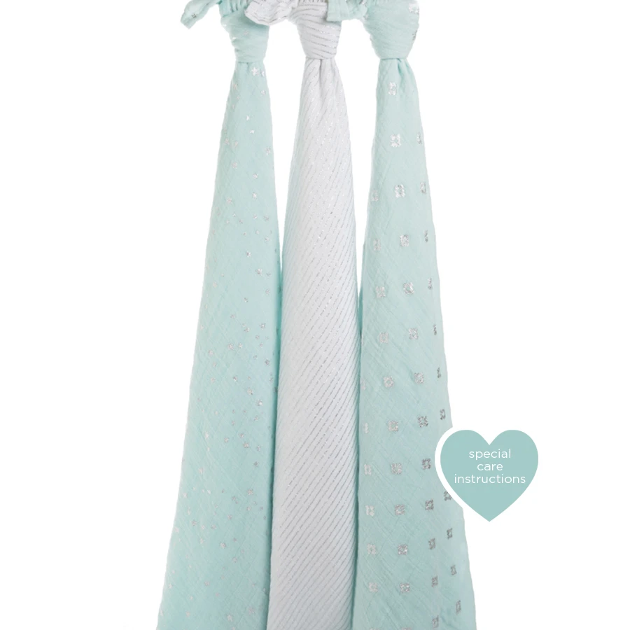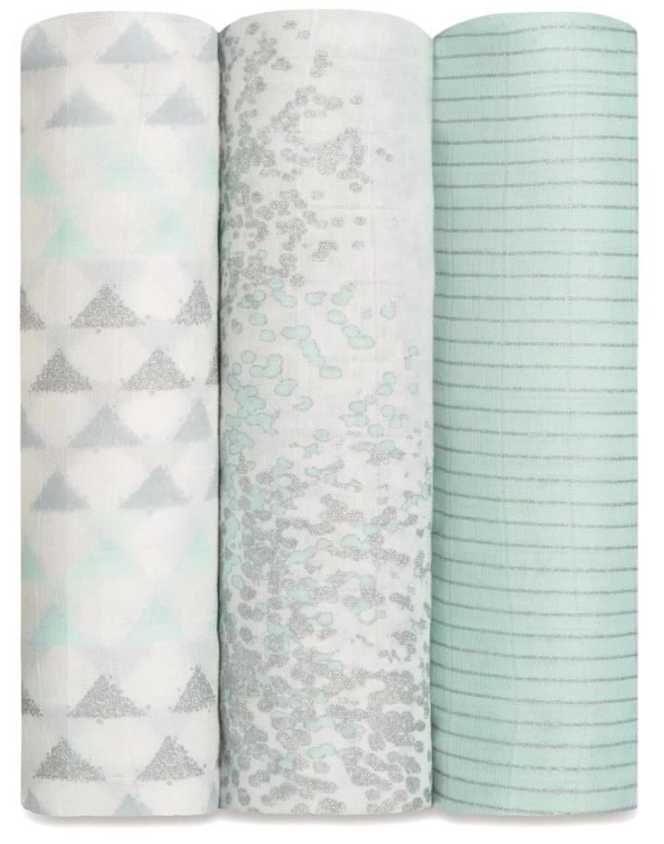 Perfect for those born to shine, our 100% cotton muslin swaddle gets a metallic makeover with new prints that are as soft as they are shimmery. No matter how you’re using our soft, breathable cotton muslin swaddle – stroller cover, burp cloth or nursing cover to name a few – it surrounds your little one in comfy goodness ’round the clock.