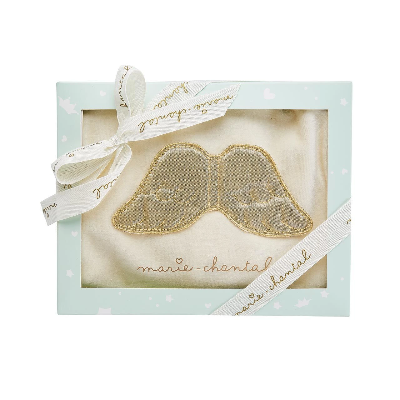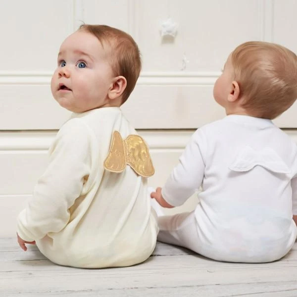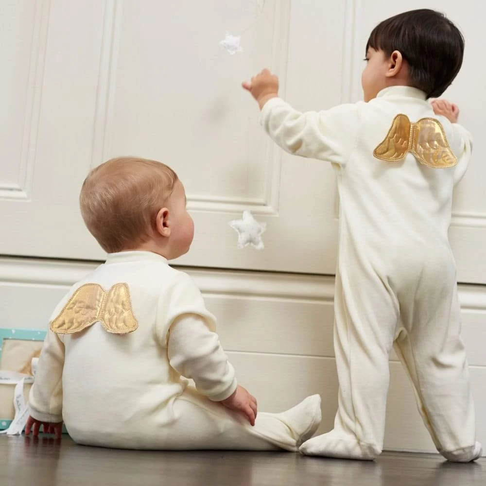 The iconic Angel Wing is made from a super soft cotton blend velour. The signature Angel Wings are stitched in gold on the back of cream coloured velour and press stud fastening help to make changing easy. Presented in the exclusive Marie-Chantal gift box, this piece is exquisite and makes an ideal gift for newborns no matter the occasion. Available in sizes 0M – 12M
