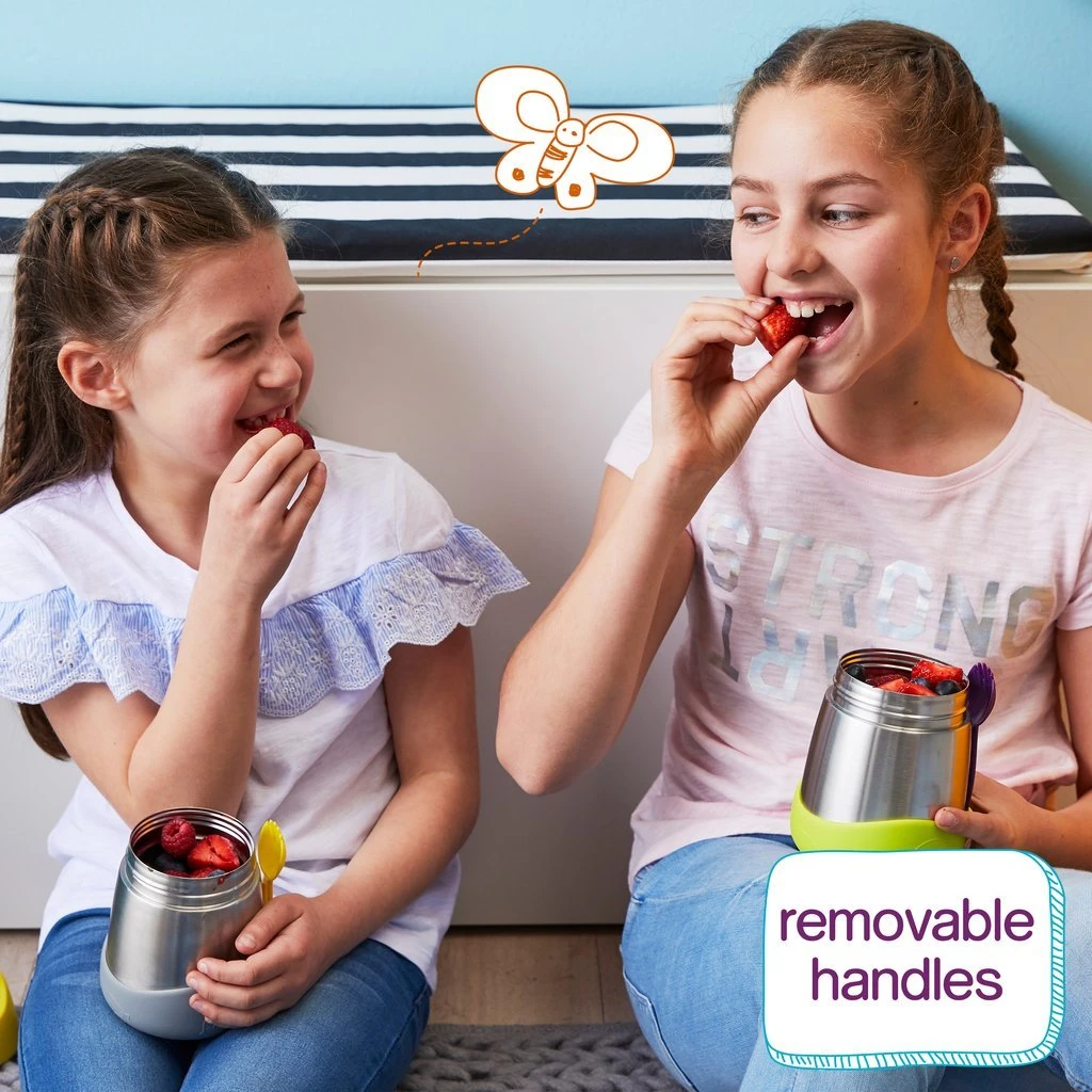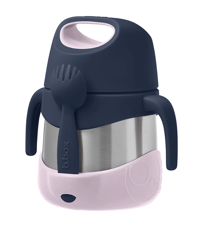 Keeps food at the perfect temperature all day, whether kids prefer warm pasta for lunch or cold refreshing fruit and yoghurt. Great for kinder and school with a 335ml capacity. Comes with spork utensil that tucks away into custom bumper. Easy grip handles give kids leverage to open the jar easily, encouraging independence. Removable arms and bumper ensure the food jar can be tailored for older kids too. Unique stop feature stops parents from overtightening the lid. Dishwasher safe