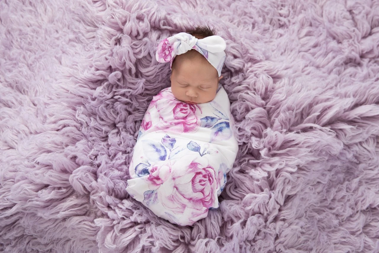 Our Cotton Jersey Wrap is soft and stretchy, it moves and stretches with baby. This wrap comes with a matching topknot.