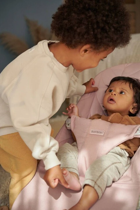 The Bliss Baby Rocker is a cosy place where your baby can play in yours and while showering or cooking. The fabrics are specially developed for little babies with a petal quilt design . And 3D sweater, our latest and softest material, is as cosy as your favorite shirt and especially comfortable on your baby’s delicate skin. When the baby touches the legs or the arms swing back and forth, the baby swing gently swings.
