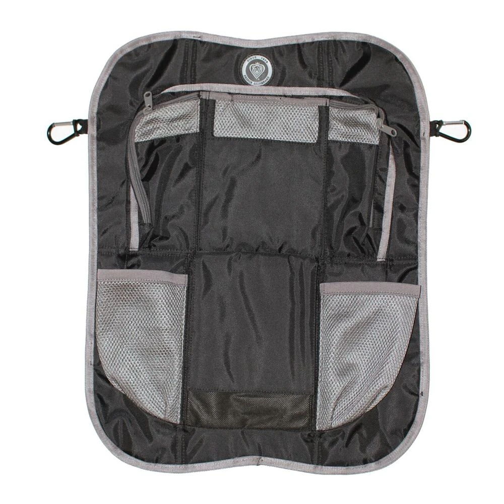 - Features include bottle/cup holders, mesh pockets, larger carry all pocket.