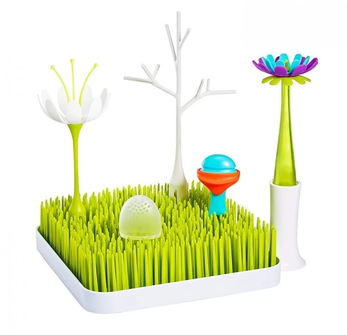 The Boon Baby Feeding Starter Pack is like no other! The set contains a pulp silicone feeder, a cool grass counter top drying rack, with the Stem and Twig accessories that fit right into the grass to hold bottles and sippy cup parts that are easily lost. Finally there’s also a soap dispensing silicone bottle brush to assist in keeping everything clean. All are made without BPA and PVC!
