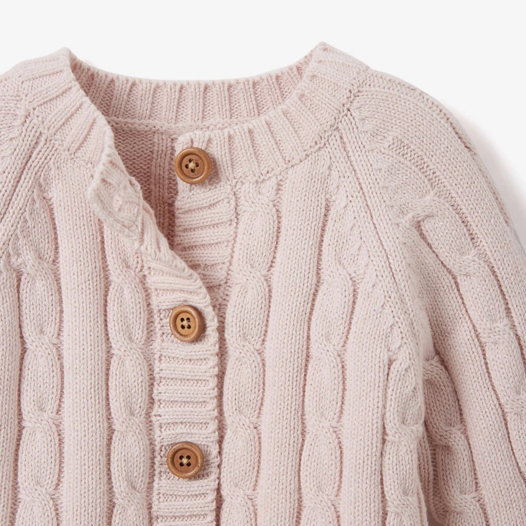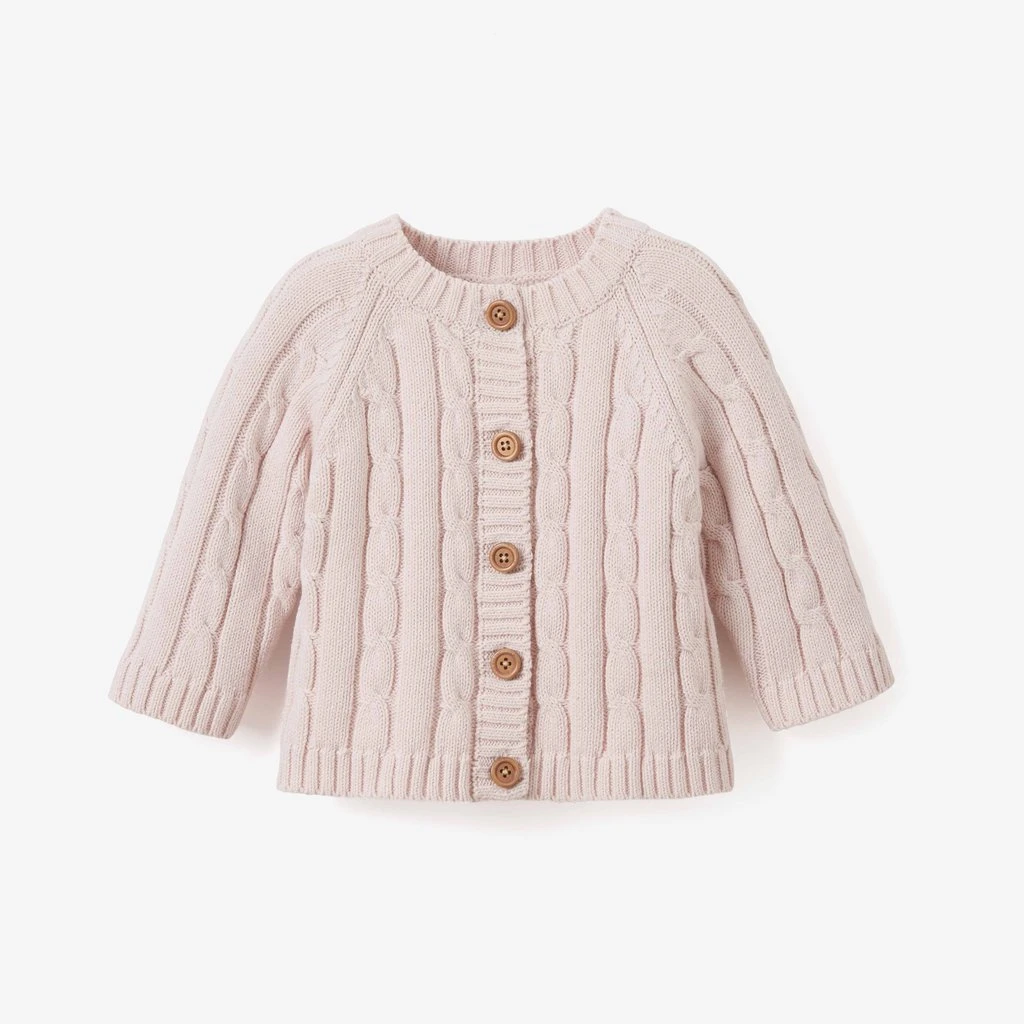 Chalk Pink Cotton Cable Knit Baby Sweater