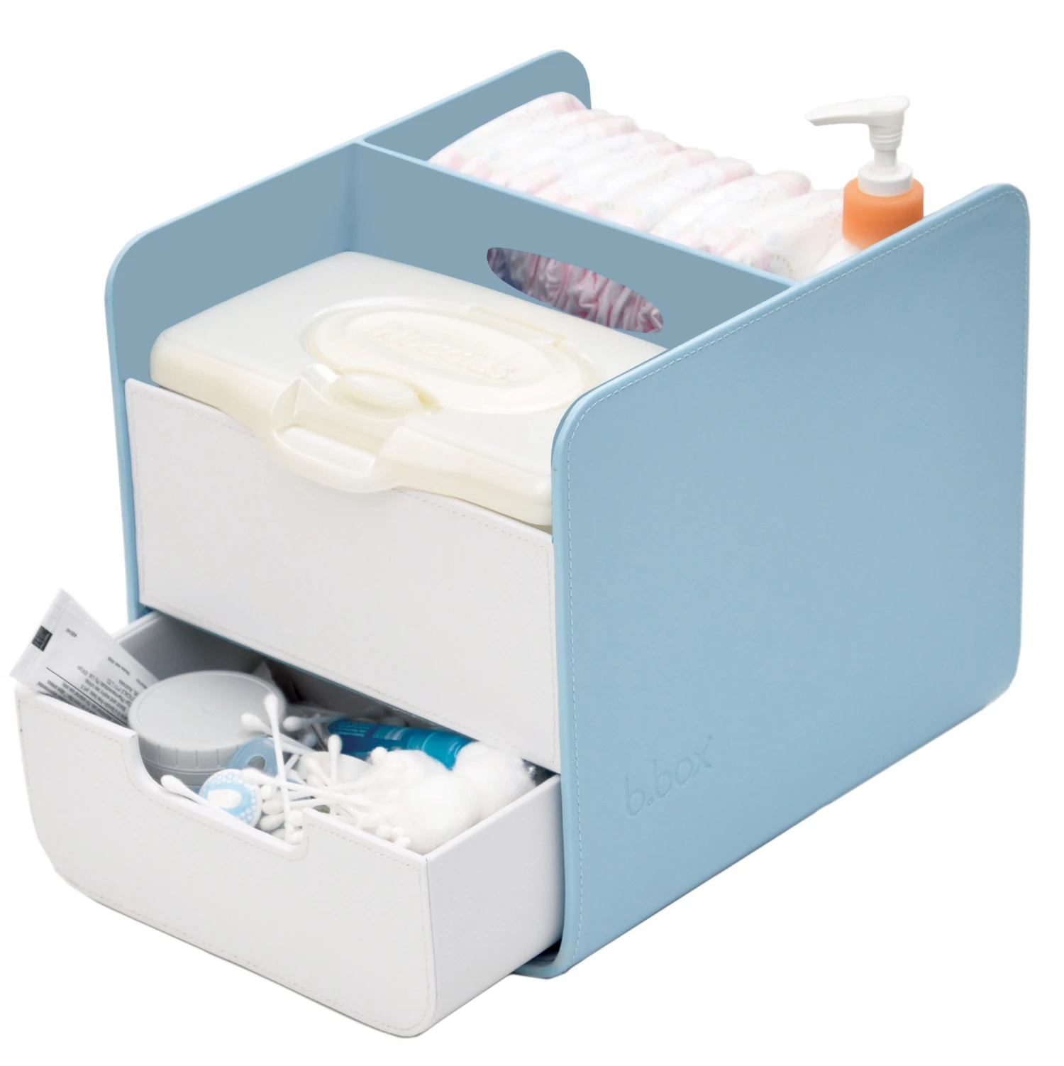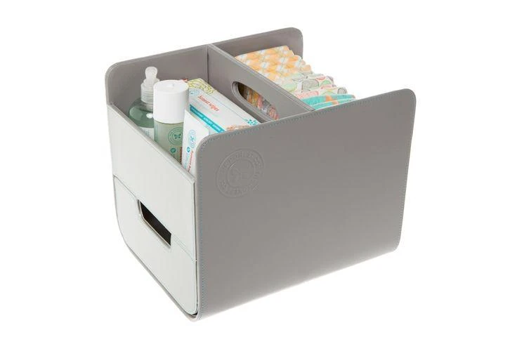 This light and portable change station ensures you have everything you need for diaper changing wherever you are around the home. Great space saver for apartment living and ideal for two-story homes. Also makes a great art caddy or home organizer once bub is toilet trained. Just pop a tissue box where the wipes box goes. BPA, Phthalates and PVC free.