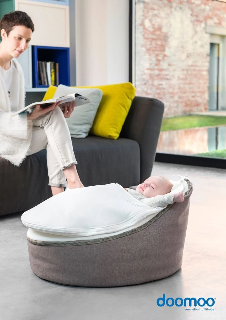 Doomoo Nest is a foot-muff especially designed for the Doomoo Seat. Doomoo Nest needs to be connected to the doomoo seat by threading the harness through the slits provided in the doomoo nest and by tying the 2 short cords to the eye of the doomoo seat’s zip.