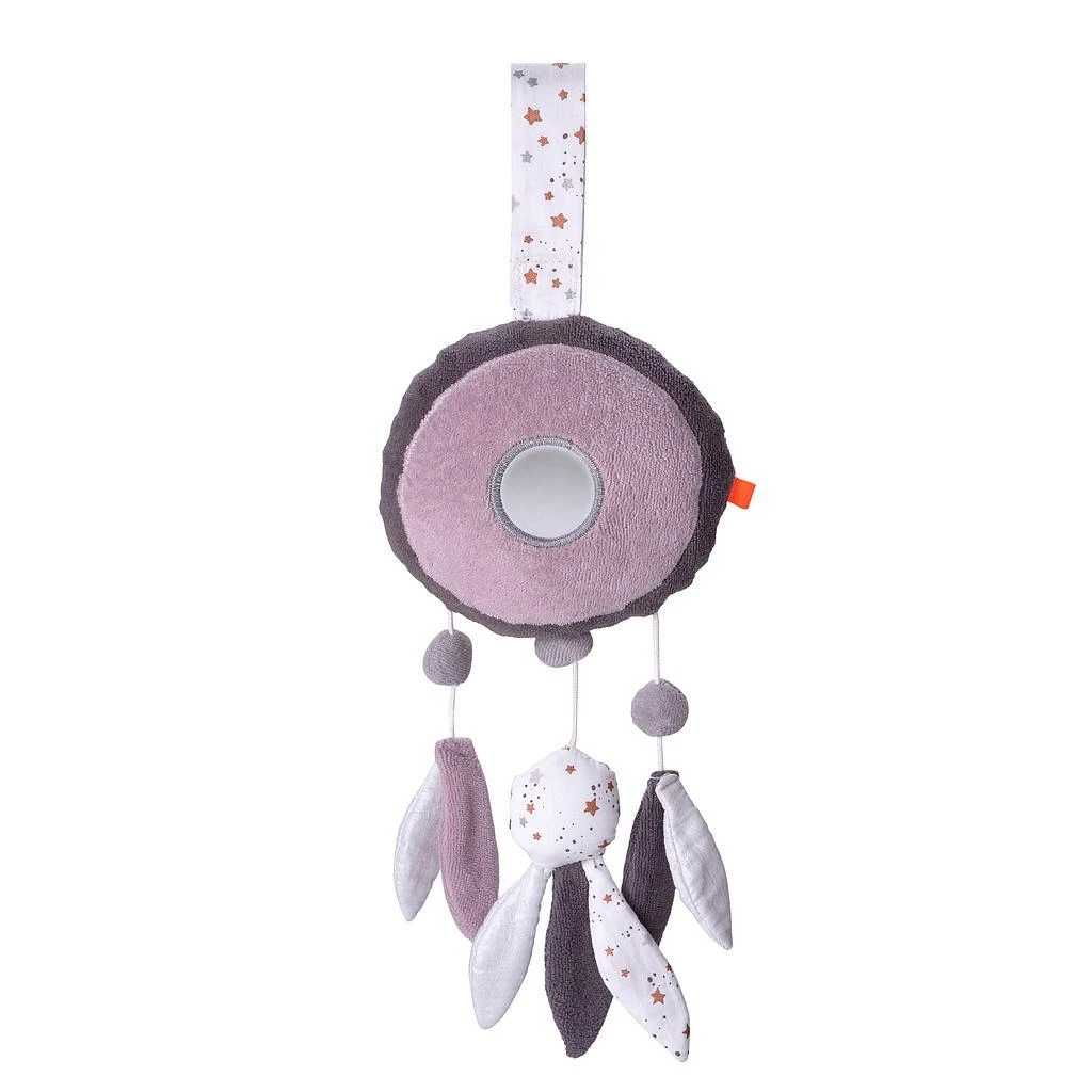 This dream catcher is a real eye-catcher. The colorful feathers and musical box will entertain your child and help them fall asleep. The Musical Box (Brahms Lulluby) can be easily replaced using the zipper and an office clip. The toy can be attached almost anywhere with its hanger