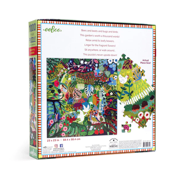 Puzzle your way through a Bountiful Garden: a plot of chives, a clucking chicken, even some sweet strawberry vines. 1000+ Piece Puzzles are perfect for the whole family to enjoy! No top, or bottom, fun to work on from any side. Illustrated by Monika Forsberg (@monika_forsberg).