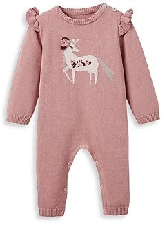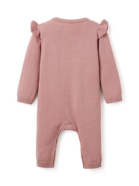 We’ve got the perfect outfit for every little lady! This soft, mid-weight cotton knit jumpsuit will keep baby warm while looking photo ready… just what everyone wants in a luxury baby gift! Of all the knit baby girl clothes, this one is sure to be every parent’s favorite. Pair with coordinating jacquard knit animal baby blanket and knit bunny toy for the perfect baby gift set.