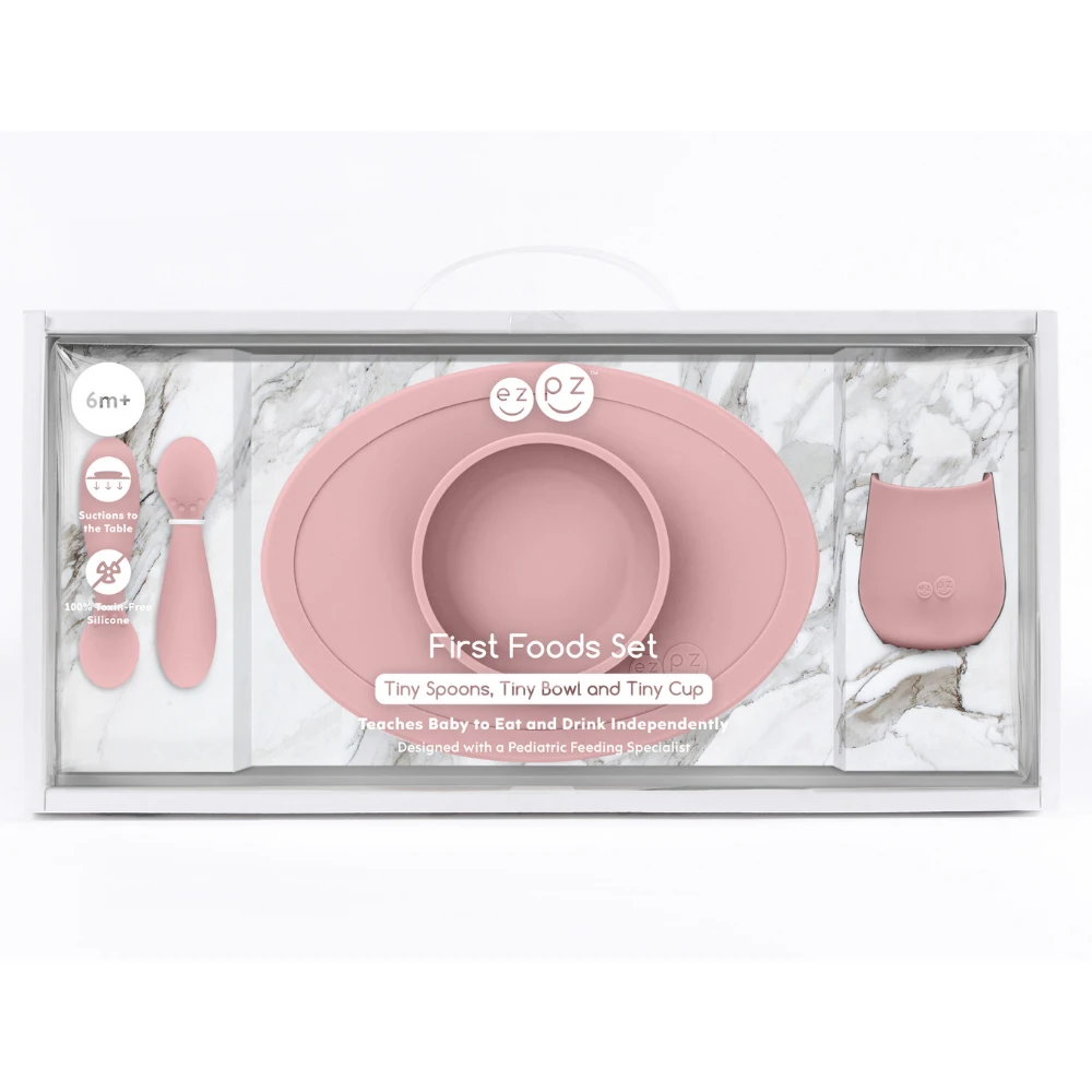 Most parents introduce first foods to their baby at 4 to 6 months of age. This experience can be fun, but it also can be messy, stressful and overwhelming. With the First Foods Set ezpz provides all of the developmental tools you need to set baby up for mealtime milestones – plus calm and confident parents!