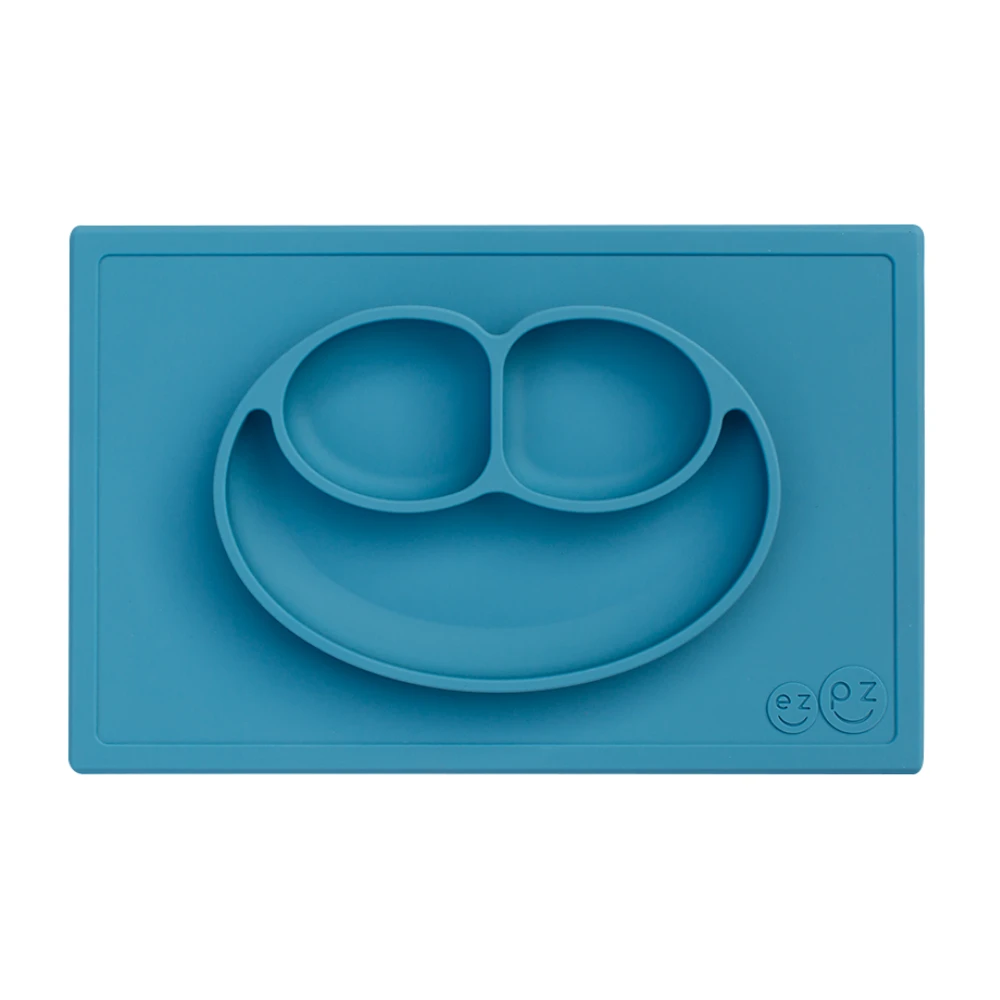 The Happy Mat is ezpz’s award-winning flagship product. It is an all-in-one placemat + plate that suctions to the table, which means that it captures the mess and reduces tipped bowls and plates. Designed for toddlers and preschoolers.