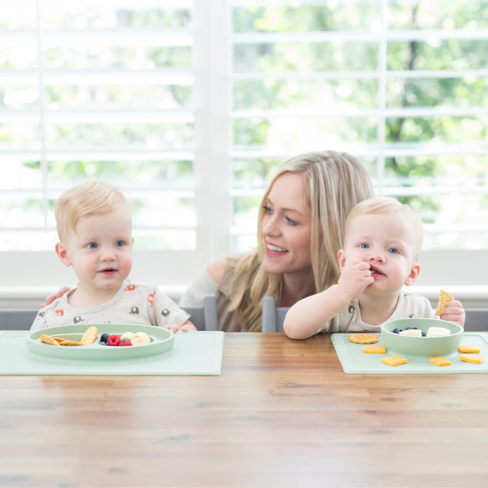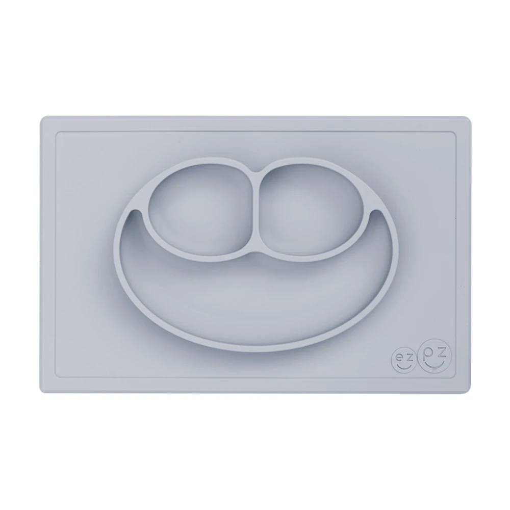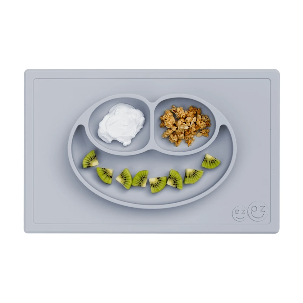 The Happy Mat is ezpz’s award-winning flagship product. It is an all-in-one placemat + plate that suctions to the table, which means that it captures the mess and reduces tipped bowls and plates. Designed for toddlers and preschoolers.