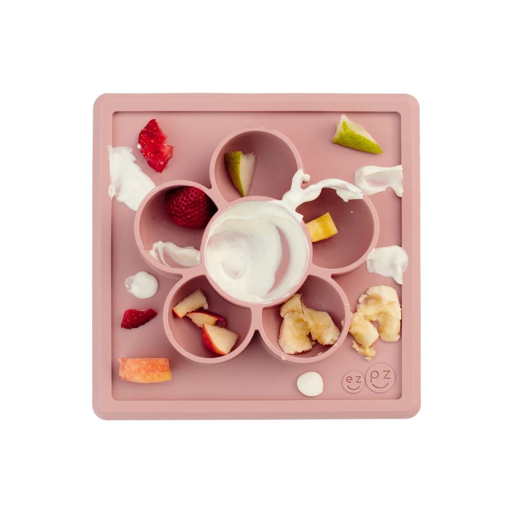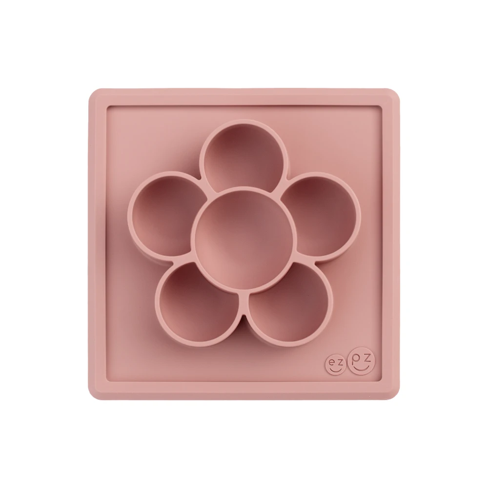 The Mini Play Mat is an all-in-one mat + flower compartments that assists with painting, sorting, beadwork and other crafts. It suctions directly to any flat surface, making it difficult for “crafting” hands to tip over their paints, glitter and beads.