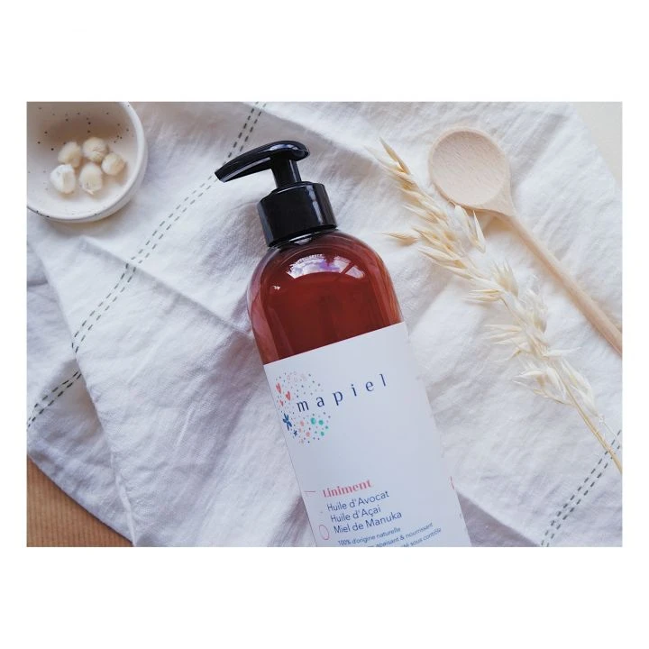 - Mapiel reinvents the classic liniment formula with this hydrating body cream that can be used by the whole family. This hypoallergenic lotion cleanses, hydrates, and protects even the most sensitive skins, leaving a soft honey-flavoured scent on the skin.