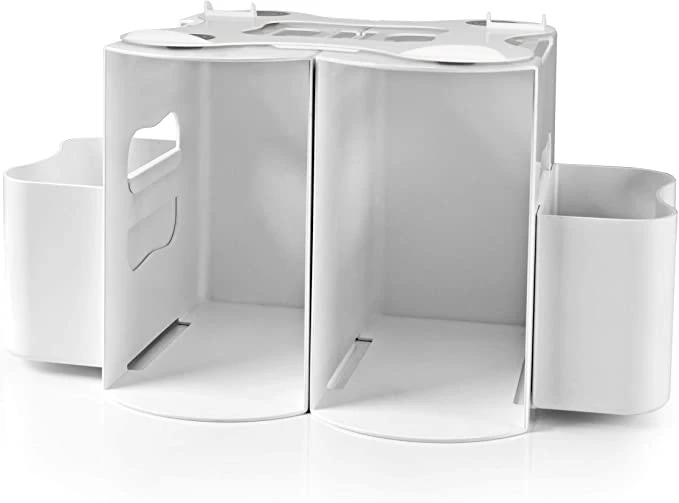 The Modular Nappy Depot has multiple configurations for use in any space in your home. It can be separated to create two nappy stations, has handles that allow for easy transport, and includes a detachable hook for hanging. For use with s. The modular nappy depot simplifies nappy changes by allowing you to customize a configuration to suit your needs – use on a flat surface, in a cupboard, or hang it on a changing table. Light. durable, easy to clean and carry – everything you need at your fingertips.