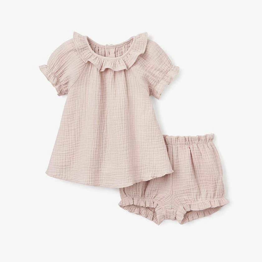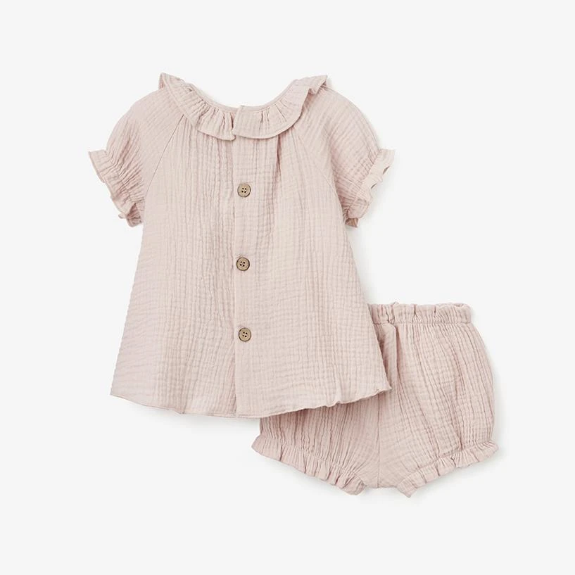 This organic cotton muslin dress is the ultimate fall layering-piece for baby. An absolutely darling baby dress, this style comes in both solids and printed muslin. Baby can wear as a set or as separates and looks amazing under one of our signature cotton knit cardigans.