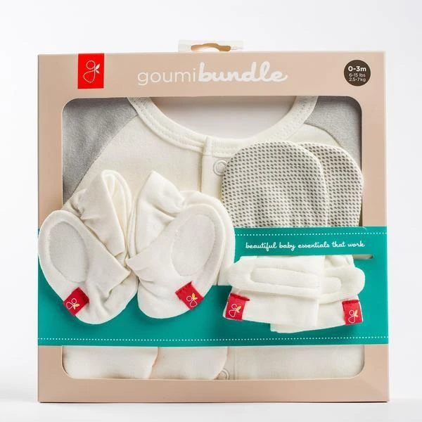 - Organic Goumi mittens, scratch-free, antimicrobial to keep your child happy and healthy. Our two-part closure system ensures that your gloves stay in place. The Goumimitts are adjustable for up to 3 months of growth.