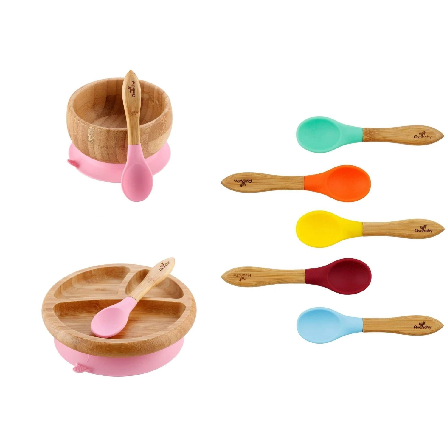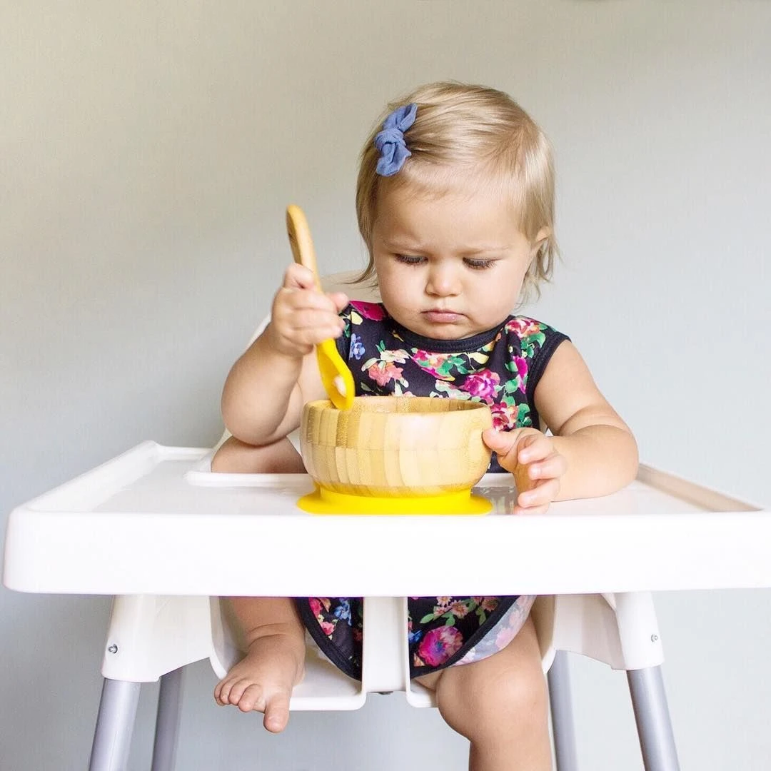 • Set your Avanchy plate or bowl so that the easy-release tab faces away from your little one.