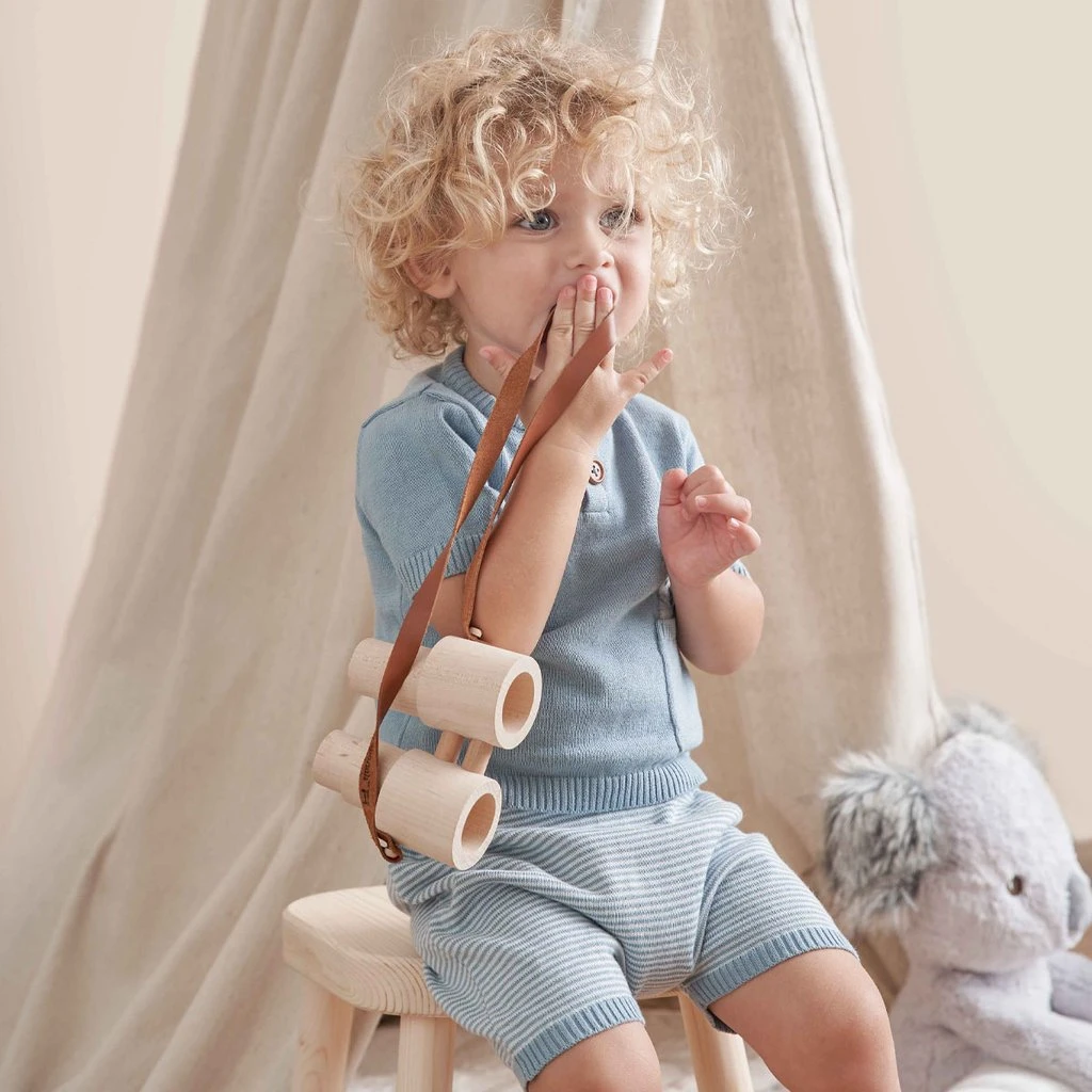 We’ve got the perfect outfit for your little wild ones! This soft, mid-weight cotton knit baby shirt & short set will keep baby cool & comfortable while looking photo ready– just what everyone wants in a luxury baby gift! Of all the knit baby boy clothes, this one is sure to be every parent’s favorite. Pair with coordinating jacquard knit animal baby blanket and knit koala toy for the perfect baby gift set.