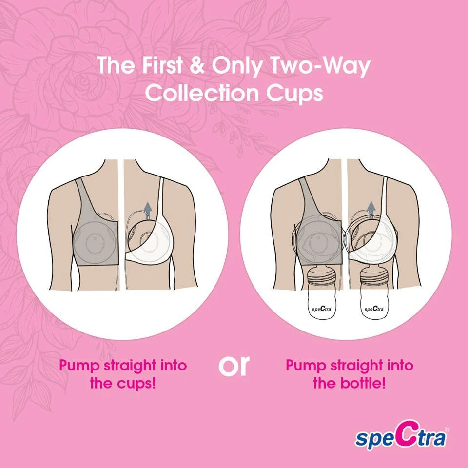 Finally, the Spectra Handsfree Cups are available so you can pump handsfree and on the go. Box contains two sets of Spectra Handsfree Cups compatible with all Spectra pumps.