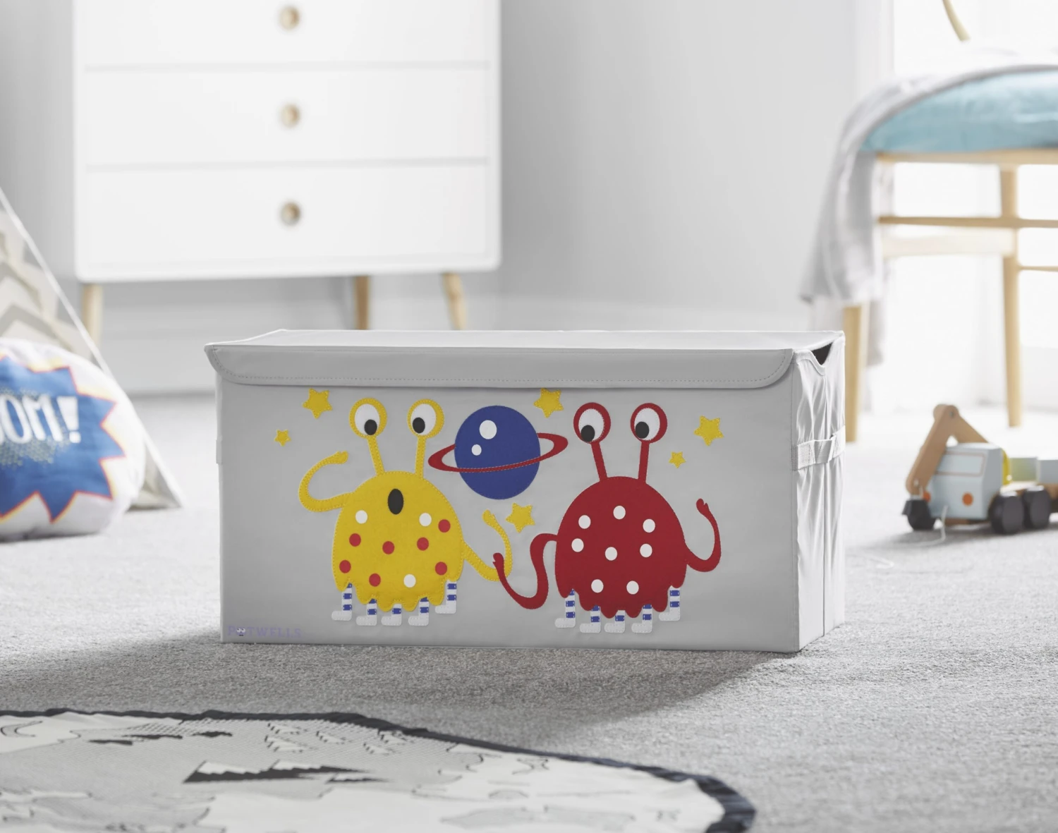 These soft grey chests with applique designs can be wiped clean in case crafty little hands make a mark.
