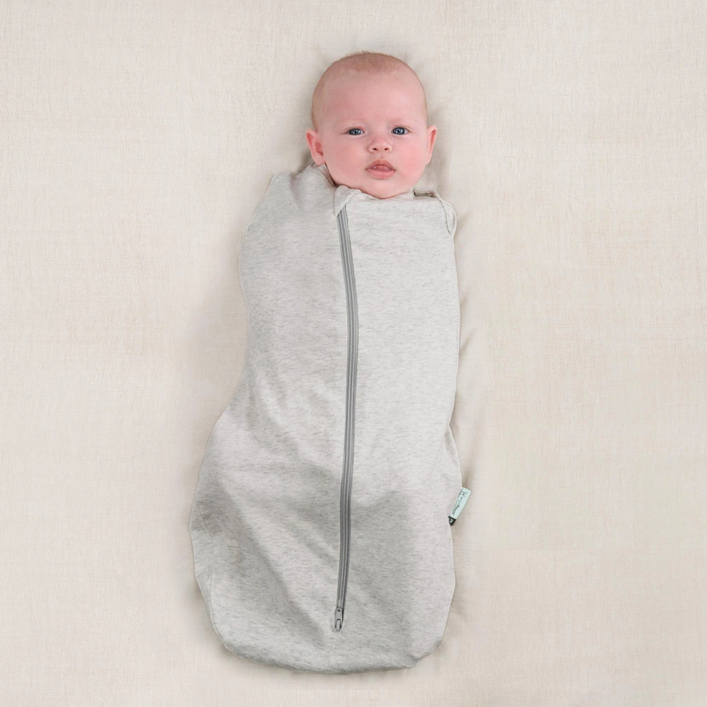 The Cocoon Swaddle bag is made with GOTS certified organic cotton, with a of touch elastane. This means it’s firm enough to restrict startle reflex whilst still allowing stretch and movement for healthy growth. The stretch also allows for full chest expansion when breathing, added comfort, and for a baby to move its hands into a self-settling position inside the swaddle. The soft, breathable organic cotton is certified non-toxic, dyed with water based dyes, and gentle on newborn skin, and skin prone to eczema breakouts. A zip enclosure also protects your child’s delicate skin, and the handy arm poppers transition the Cocoon from an arms-in swaddle to arms-out sleeping bag when baby is showing signs of rolling. The bell shaped design is approved by the International Hip Dysplasia Institute as being hip-healthy, and promotes proper joint development in the hips and shoulders joints. Finally, the two-way zipper makes for quick and easy nappy changes during sleep with minimal disruptions.