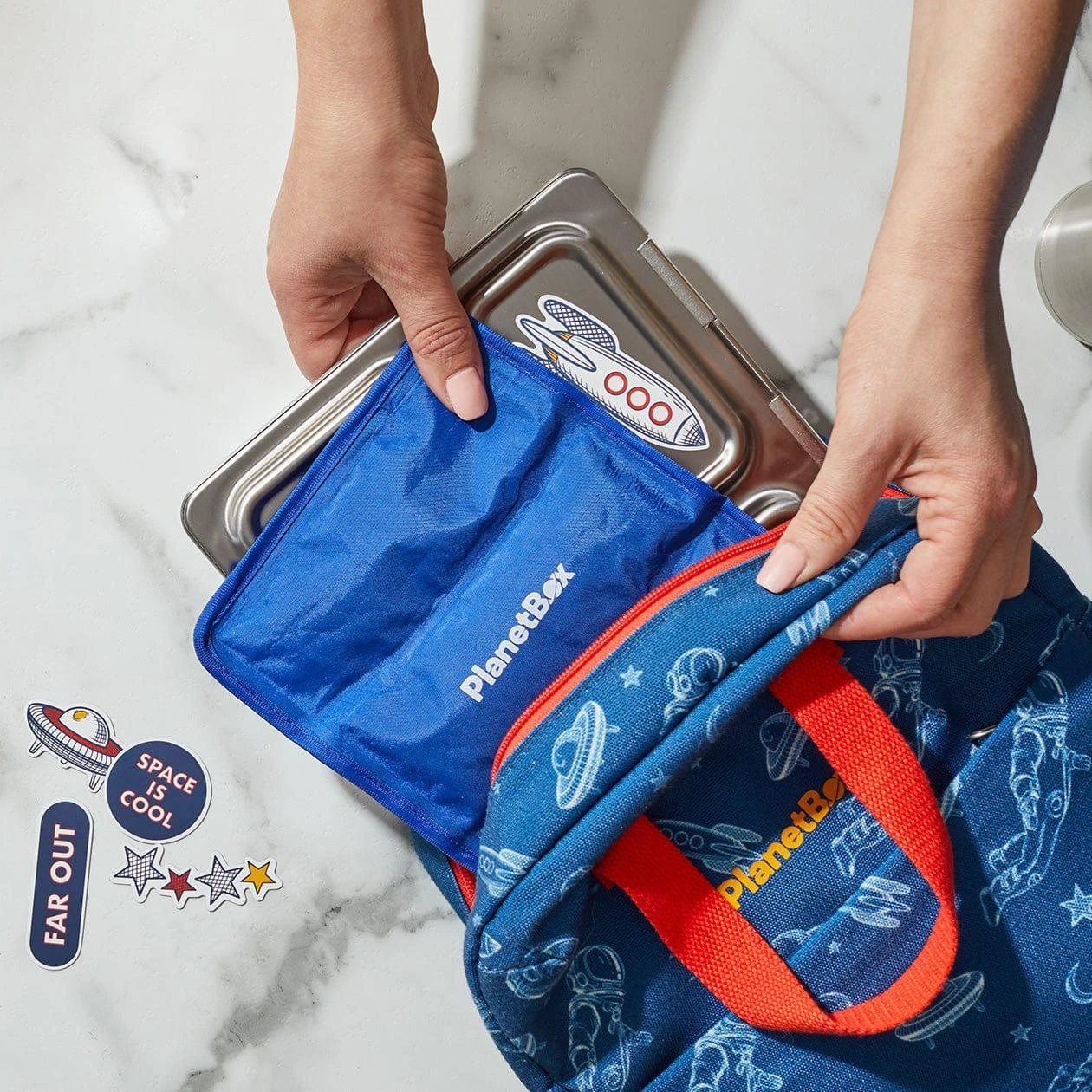 - Three interior pockets to hold PlanetBox Cool Pack, utensils, and any extras